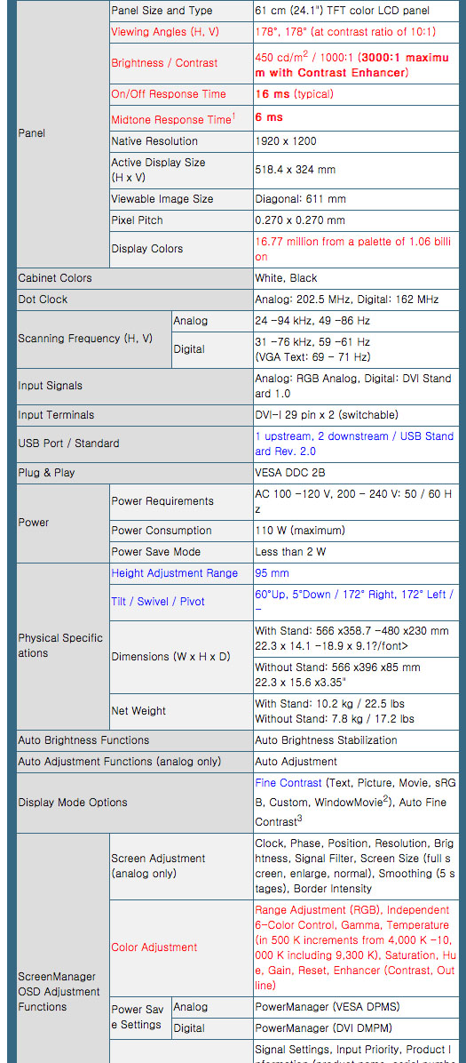 에이조 LCD모니터 FlexScan S2411W